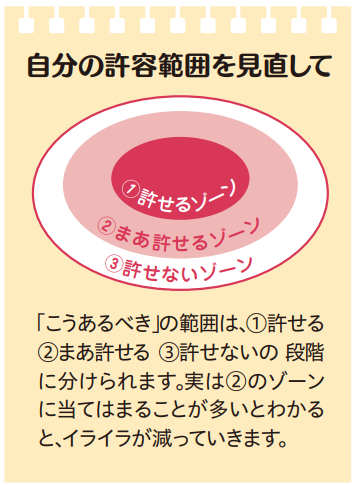 怒りを感じた言動が本当に許せないことなのか、自分の心に問いかけてみましょう。右ページの図のように「許せる」「まあ許せる」「許せない」の3段階で客観的に判断する習慣をつけると、許容度が広がります。