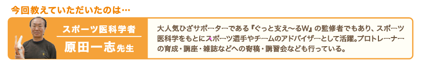 今回は、ウェルヴィーナスの大人気ひざサポーター『ぐっと支え~るW』の監修者でもあり、スポーツ医科学者の原田先生をお招きして講座を開催。