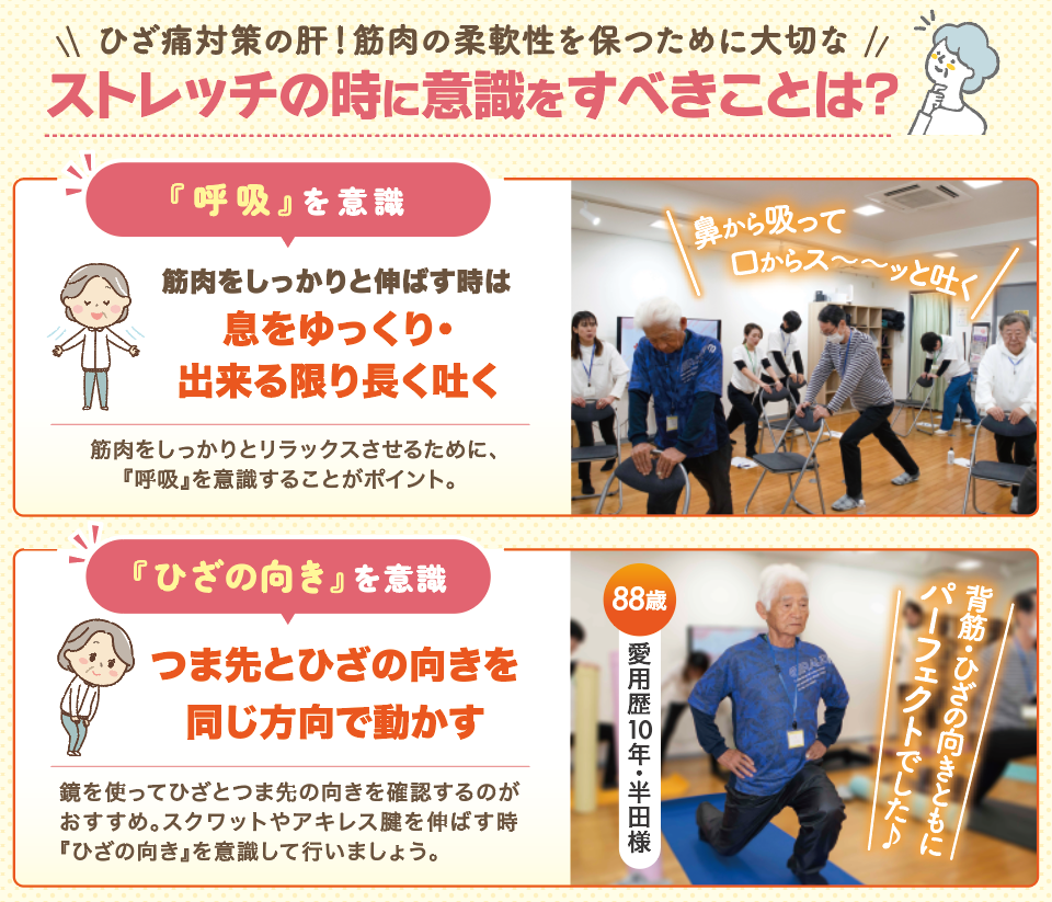 ひざ痛対策では『筋肉を正しく使い、柔軟性をたもつこと』が大切