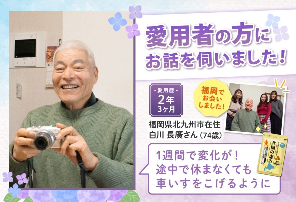 『北国の恵み』のおかげで、ふしぶしの違和感はかなり減ってきました。以前はつらかった下り坂も「今日も大丈夫だな」「前とは違うな」って、毎回思うんです。この状態をキープしたいですね。
