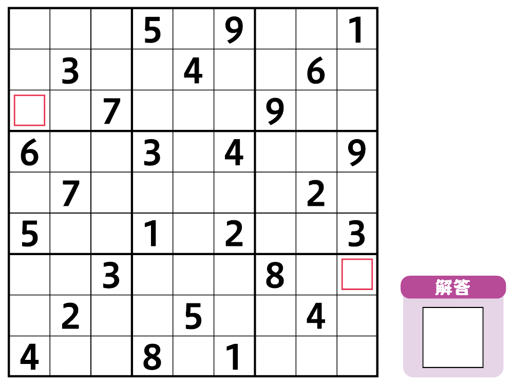 空いたマスに1から9までの数字を入れてください。