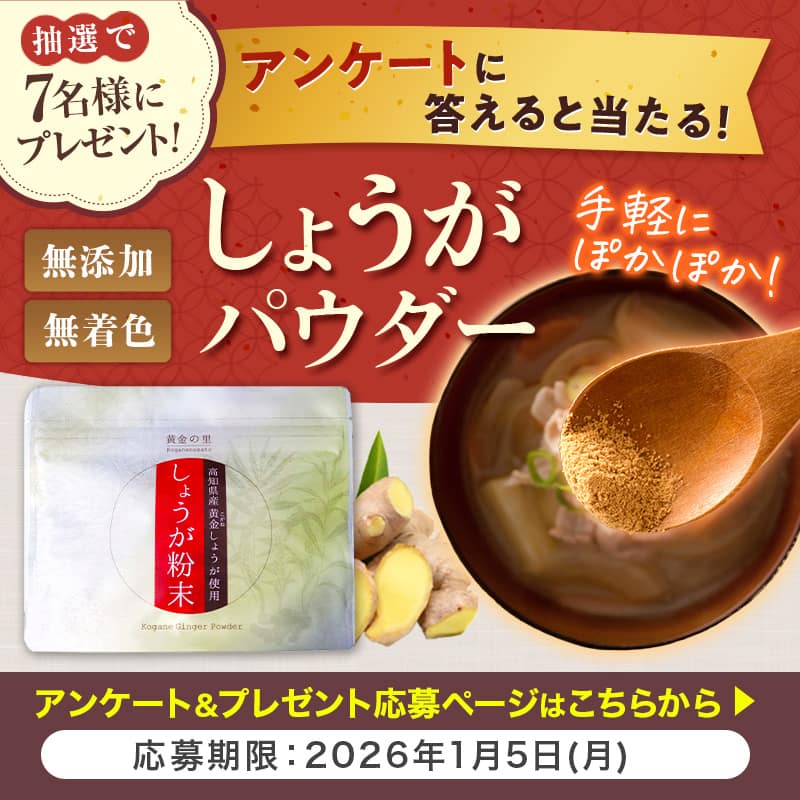 温活におすすめのしょうがパウダーです。原料の高知県産「(黄金(こがね)しょうが」は、体を温める成分の含有量が通常のしょうがの約3倍も。細かい粉末で、冷水にもサッと溶けて使い勝手も◎。いつもの料理や飲み物に加えるだけで温活できます。